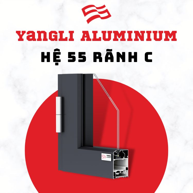 - Hệ 55 Rãnh C được đồng bộ hóa với phụ kiện cao cấp và sập vát được coi là giải pháp thông minh đem lại sự mềm mại vẻ đẹp sang trọng cho cửa nhôm.