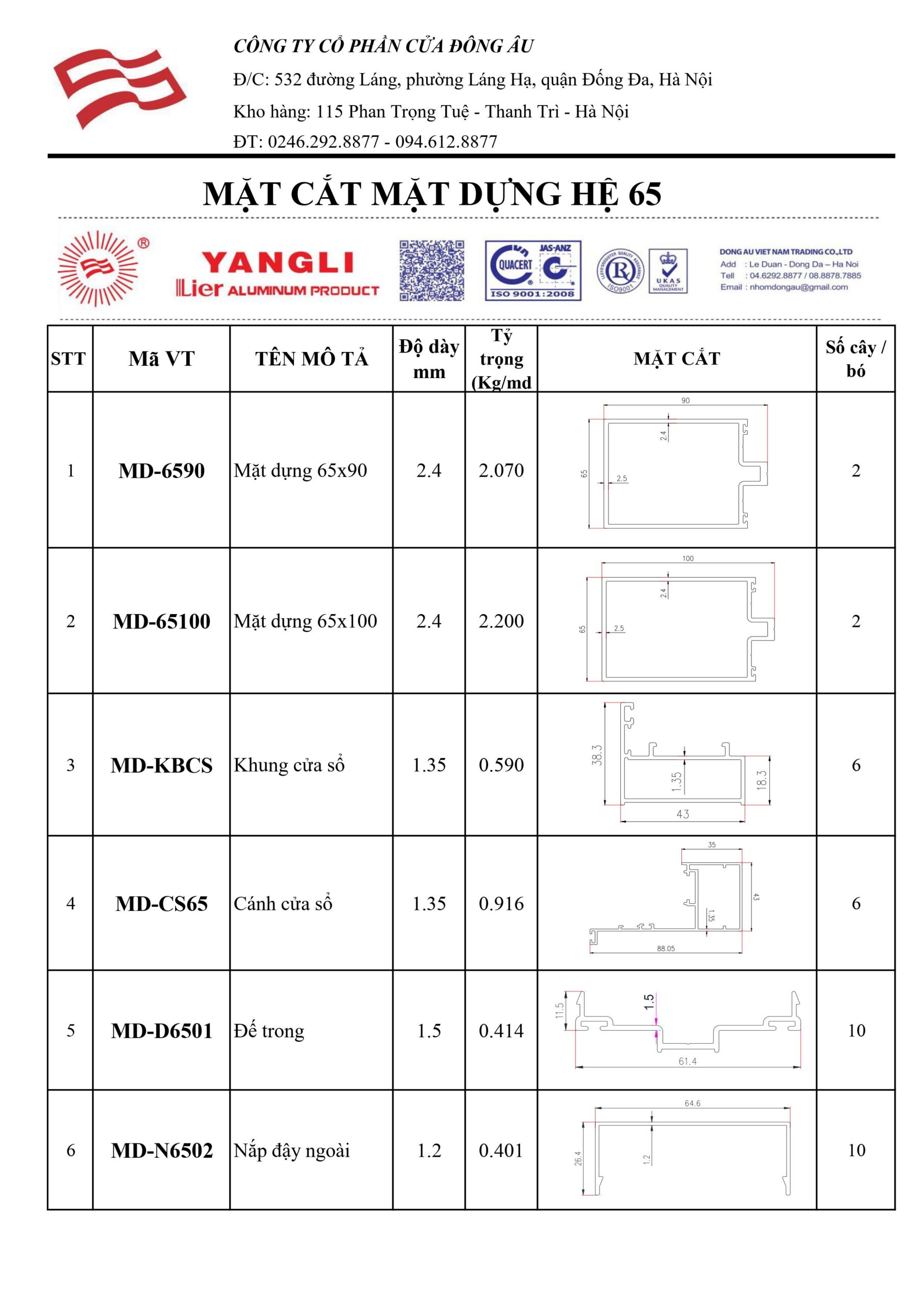 Hệ mặt dựng Yangli 65 là mặt dựng phổ biến nhất hiện nay trên thị trường bởi dễ lắp đặt , có thể sử dụng cho mọi loại bề mặt bên ngoài của toà nhà, là dòng sản phẩm cao cấp mang thương hiệu YANGLI