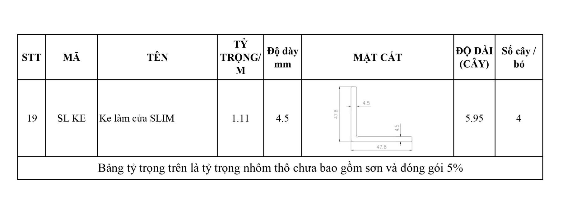 Mặt cắt hệ slim